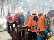 2月6日(金)~8日(日)の3日間、緑ヶ丘公園にて1月例会 仲間と愉快に結束強化「第52回おびひろ氷まつり」開催が開催されました。 約2週間に亘る準備期間で幸福駅スライダーとサイレージスライダーを作成し、まつり本番を迎えました。今年は主会場となる緑ヶ丘公園に加え、広小路会場、夢の北広場会場の3会場での開催となりました。8日は降雪となりましたが、6日と7日は好天に恵まれ、帯広YEGが参画した緑ヶ丘公園会場は3日間で13万8,900人の来場者で賑わいました。 スライダー作成、飲食販売ブースを設営する漢達。 |