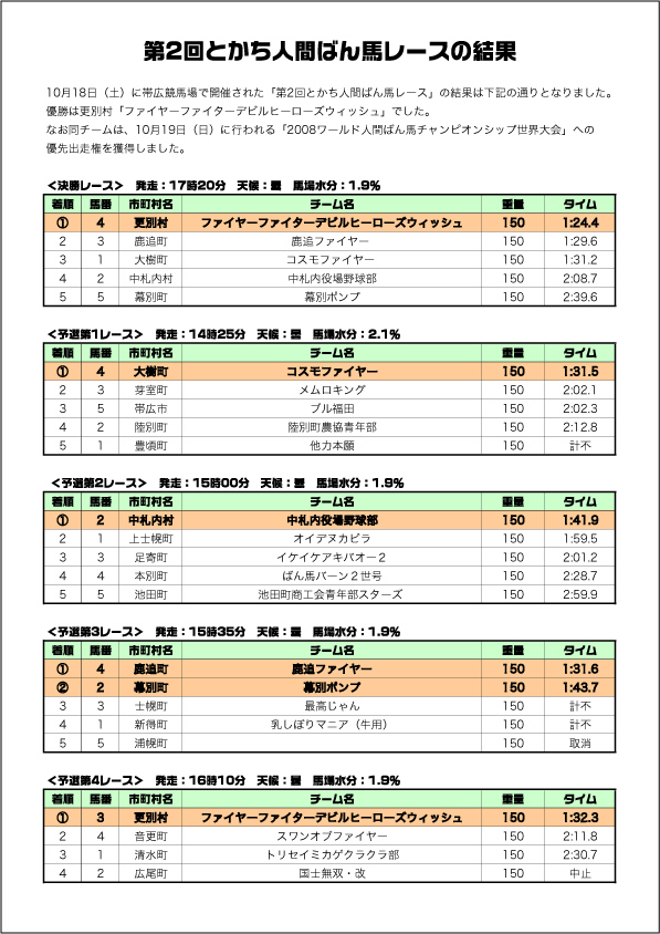 18日の「とかち大会(市町村対抗)」は、更別村の”ファイヤーファイターデビルヒーローズウィッシュ”が優勝。地元から応援に駆け付けたサポーターたちの熱い声援に応えるように、どのチームも一丸となってゴールを目指す姿は、まるでその地域やまち、そのものをけん引しているかのように、錯覚するほどでした。