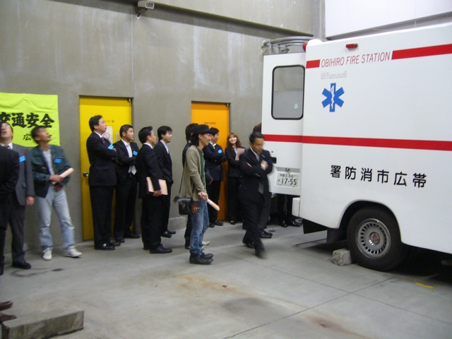 救急車の機材や設備を中に入って見せていただきました。また、車庫のなかには緊急時や災害に必要な沢山のホースやゴムボートなどが装備されていました。最後に朴副会長よりお礼の挨拶があり、研修を終了いたしました。個人にはもちろん、日頃 様々な事業でたくさんの人とふれあう機会が多い私達は1つの「備え」として学び、意義のある例会になったのではと感じます。帯広消防署の皆様、救急課の中村様、山本様、北村様、本当にありがとうございました。 |