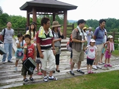 会員間はもちろんのこと、家族との交流が図れる待ちに待った体験メニューの時間に移りました。 ①ウォークラリーグループ 四グループに分かれてYEG会員と家族が手と手を取り合う時間を共有。時間が経つごとに笑顔も増え、心が開放して行きました。 |