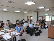 約6時間半にわたる一日目の研修がスタートです。4~5人のグループに分かれ、休憩をはさみながら進行していきました。 久保講師には、 井上講師には、 上野講師には、 それぞれ担当講師のご指導により、私たち参加メンバーは、自社および他社が行う事業について、じっくりと頭で考え、紙に自分の手で書き込み、グループ内でお互いに意見交換し合って、多くの学びと気づきを得ることができました。 |