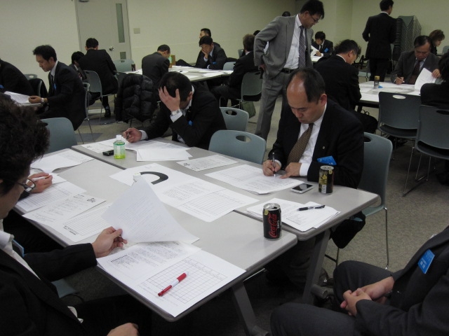 それぞれ考え方が違う中で、互いの意見を聞き、納得、主張などを繰り返すことでグループとしての結論を導きます。実際に話合いが始まると時間の経過が早く、合意する為に必要なプロセスをリアルに体験することが出来ました。 |