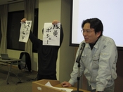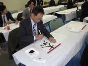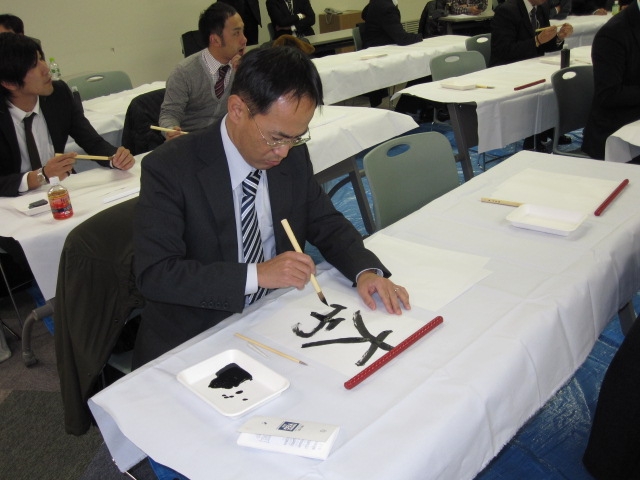 研修の始まりは、新春書初め! 各々、入会に対する思いを一筆入魂し、様々な文字を書いて頂きました。 入会年度の早い方は今年度の事業で活躍をしており氷祭りジャンボスライダーを担当している酒井雅之委員から「隊員ボシュ―」という文字と事業成功に向けた力強い言葉。関わり合う中で、YEGに対する愛情が増えていくんだと思います。 |