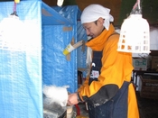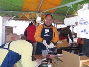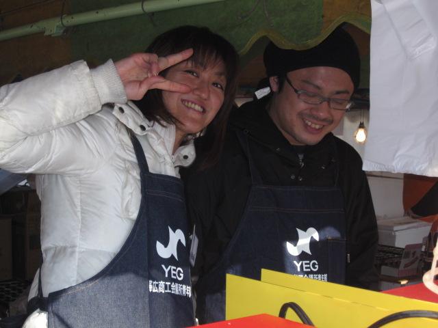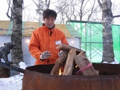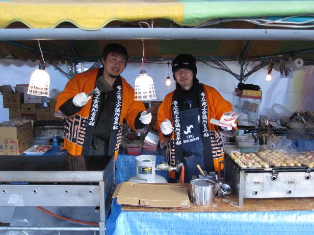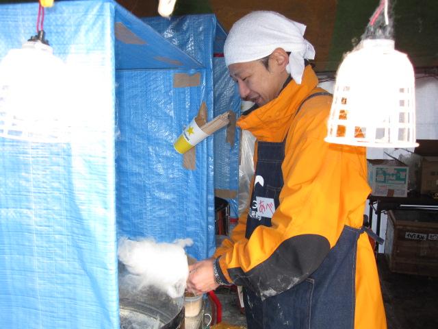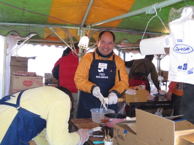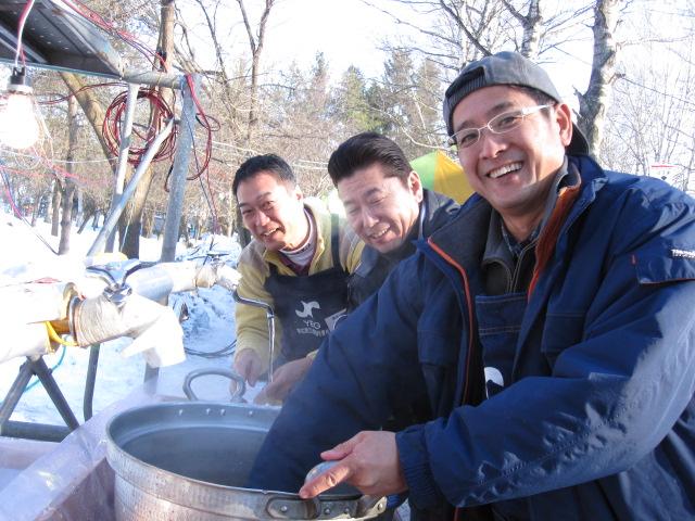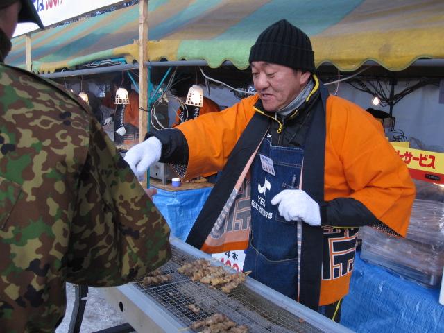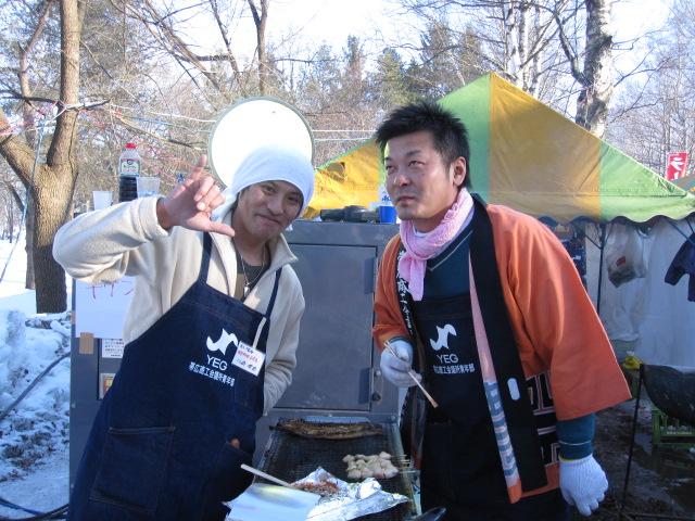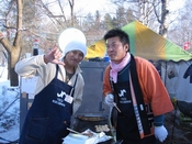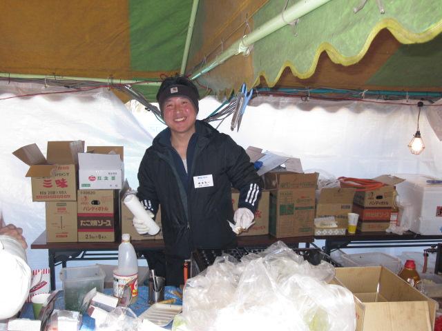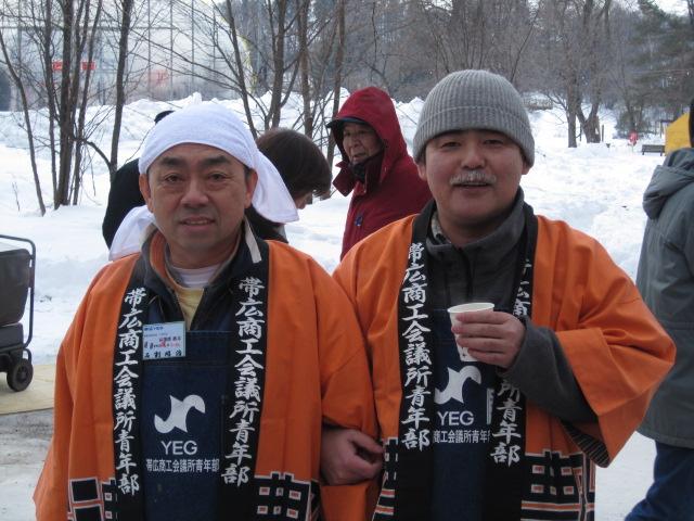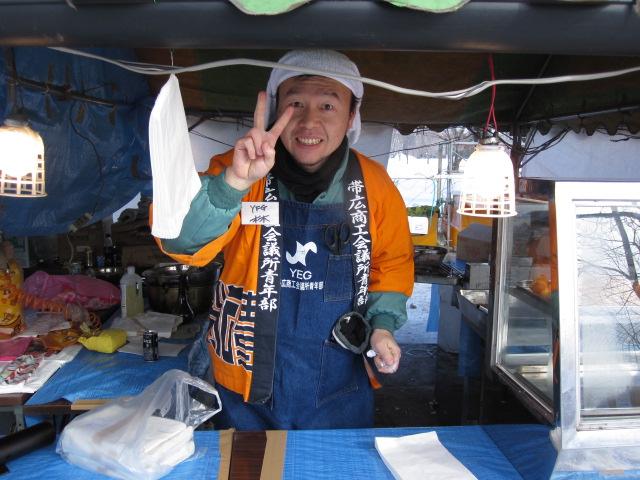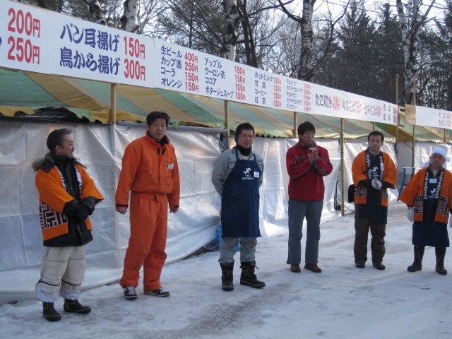 本年度は氷まつり実行委員会の意向により、味覚コーナーの設営位置が例年とは違い、会員みんなが不安となる中、角玄前プロジェクトリーダーの『蝦夷はなまらえ~ぞ~』のエールとともに、3日間のまつりが開幕しました。 |