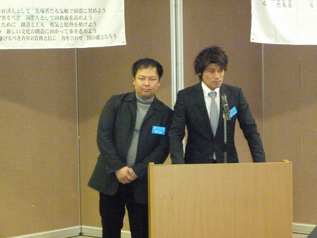 続いて22年度の、出向報告が行われ、北海道YEGの専務理事として出向し、大活躍中の石井直前会長より、北海道YEGが今年度重点を置いていた単会数の増加についてご報告頂きました。同じく北海道YEGに出向の川崎リーダーと伊藤智将君から、夢会議についてのご報告を頂きました。 |