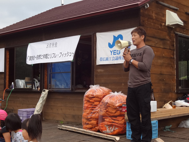 平成23年8月21日(日)『御影の滝 山女魚園』で8月例会が開催され、YEGの仲間、OB、家族の112名が参加しました。