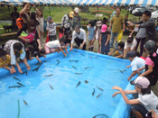 大会が終了後は、中学生以下の子供たちが参加する『魚のつかみ取り大会』。子供たちも真剣です。