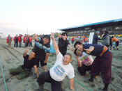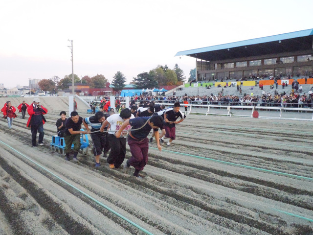 10月15日(土)、10月16日(日)2日間、帯広競馬場は多くの来場者で賑わい、第5回ばん馬まつりが盛会のうちに終了しました。 その祭りの中でメイン企画でもある『ワールド人間ばんばチャンピオンシップ』が行われました。 今回も昨年に引き続き、優勝賞金88万円を25チームでの競技となりました。 |