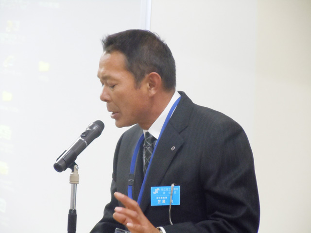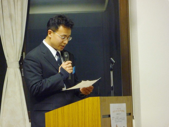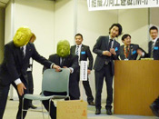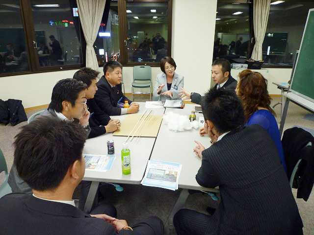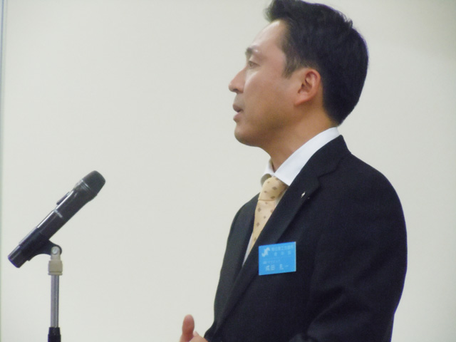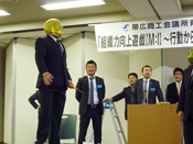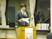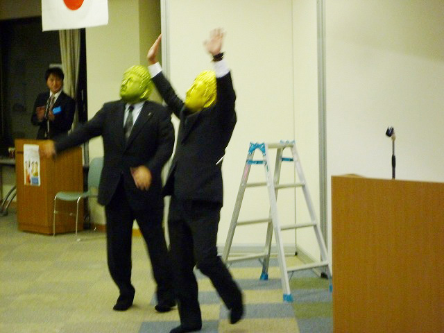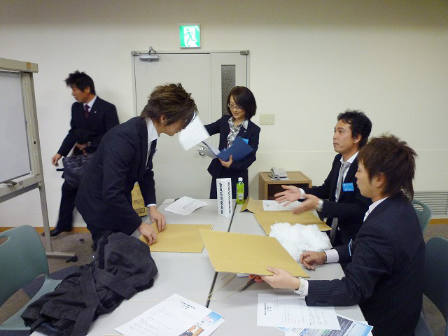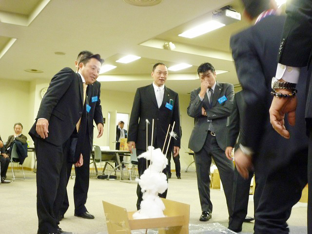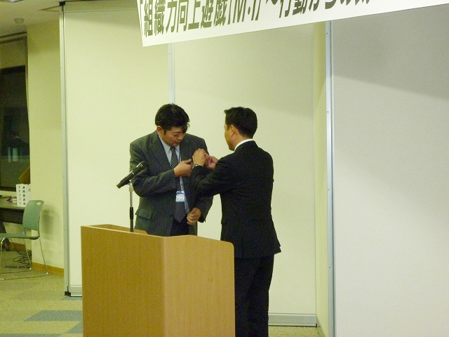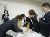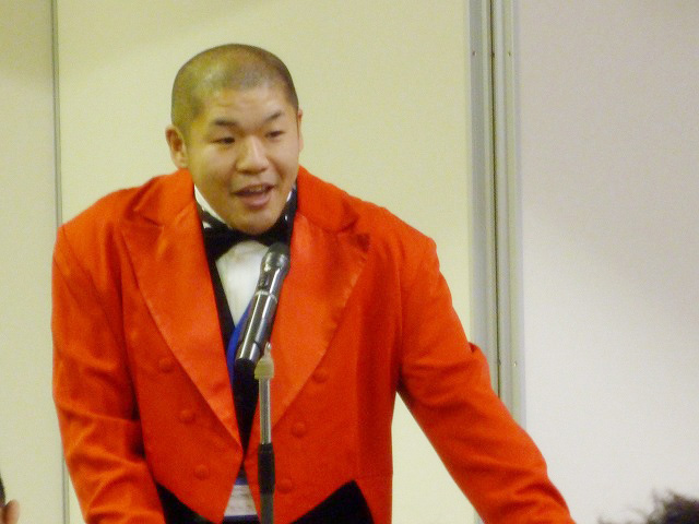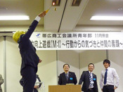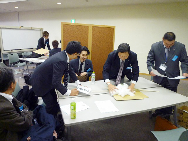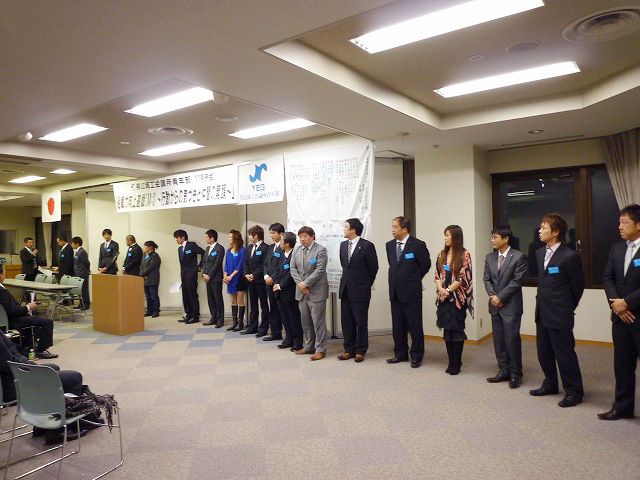 平成23年11月24日(木)11月例会「組織力向上遊戯【M:Ⅰ】」~行動からの気づきと仲間の素顔~が開催されました。例会セレモニーでは冒頭成田会長の挨拶から始まり、会員交流委員会より12月のクリスマス例会のPRが行なわれたほか、新入会員の田岡和憲君が紹介され成田会長より徽章が渡されました。 |