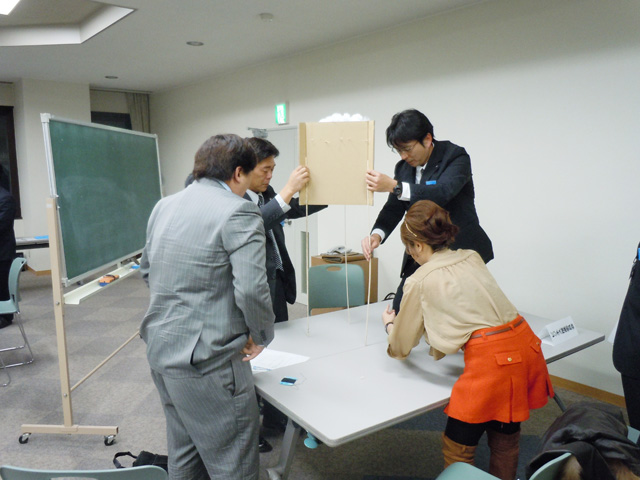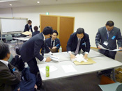 作戦終了後、各委員会で課題解決における項目シートを使い、自分や他のメンバーがどのような行動・言動を取っていたかを再確認し、各委員長が代表しグループ内の報告を行ないました。 |