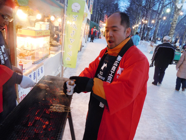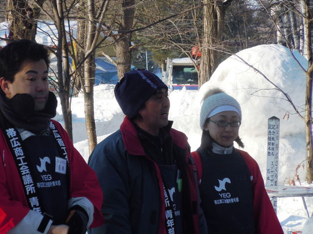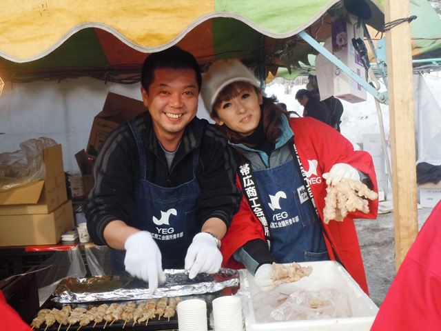 今年は、YEGスライダーの場所が味覚コーナーの近くに設置され来場者にもっと楽しんでもらえるようにと工夫がなされ、メンバー一人一人の意欲もさらに高まり、まつり当日を向かえました。 |