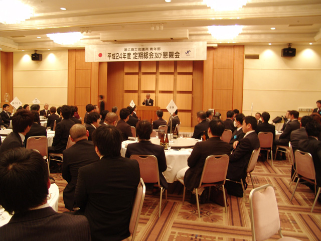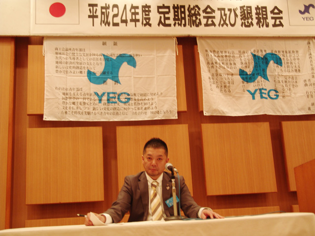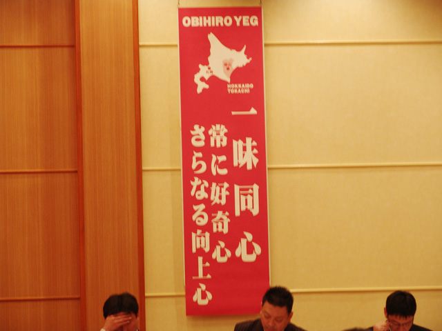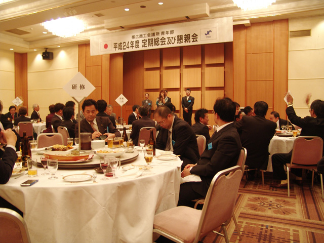 平成24年4月25日(水)帯広東急インにて平成24年度定期総会と懇親会が行われました。 望月会長率いる平成24年度体制がスタート。今年度のスローガン「一味同心〜常に好奇心、さらなる向上心〜」への想いが会長から語られました。 |