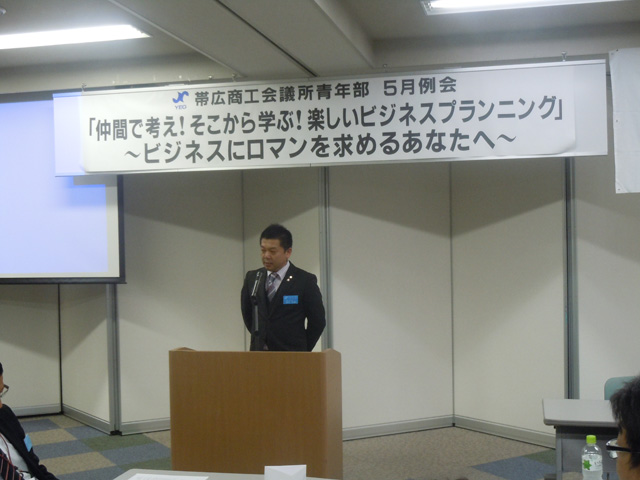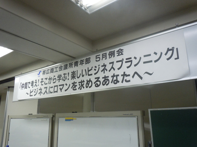 平成24年5月23日(水)帯広商工会議所6階大会議室で5月例会「仲間で考え! そこから学ぶ! 楽しいビジネスプランニング」~ビジネスにロマンを求めるあなたへ~が開催されました。