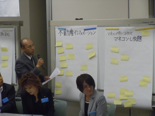 例会の趣旨説明が渡辺委員長から行われた後に委員会ごとに別れ、委員会メンバーのビジネスプランをブレーンストーミングという手法を使い委員会内でブラッシュアップを行いました。