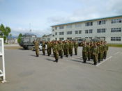 まず、初めに望月会長から第5特科隊の隊長に着隊報告をし、小柳委員長より挨拶の後に科目がスタートしました。 停止間の基本教練動作、行進間の訓練を行いました。 自衛隊の紹介DVD鑑賞、ベットメイクなどを体験して、次の日の10km行軍の用意をしてこの日は就寝。