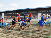 10月13日(土)・14日(日)に第6回ばん馬まつりが開催されました。そのメイン企画である「ワールド人間ばん馬チャンピオンシップ」が14日(日)に行われ、優勝賞金88万円をかけた戦いが25チームで争われました。 |