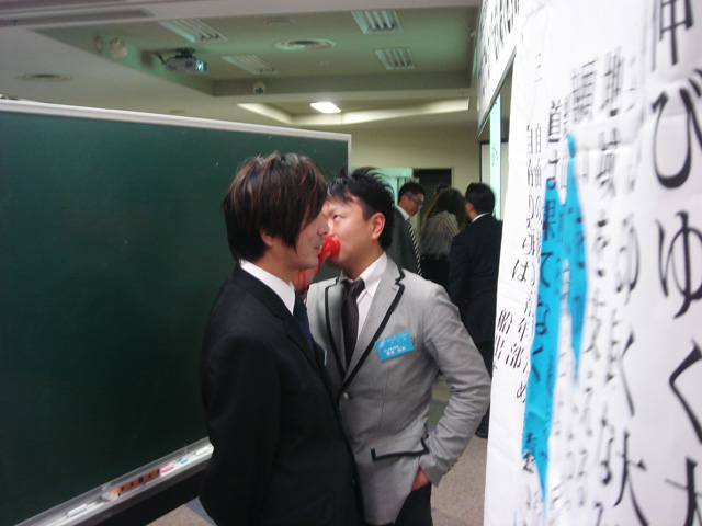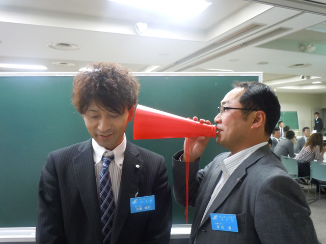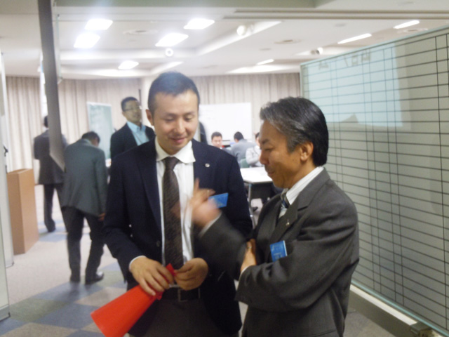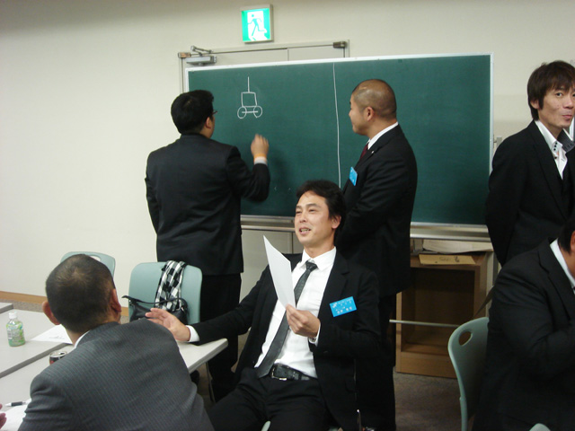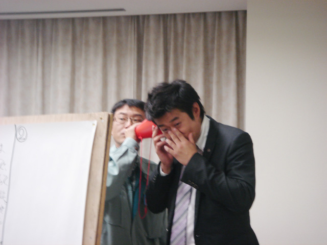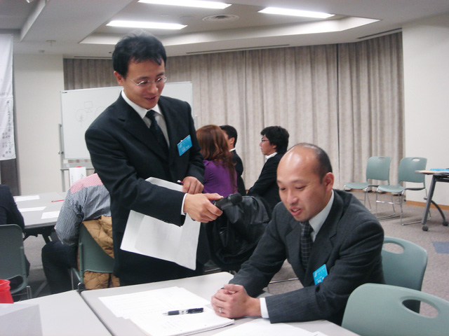 エクササイズⅢではテーブルのメンバー全員での伝言ゲーム。はじめの人が文章を覚え、それをテーブルのメンバーに伝えていくという内容です。1回目はなじみのあまり無い名前の登場人物が出てくる簡単な文章。2回目はメンバーの名前が登場する文章。1回目、2回目と内容は一緒で登場する名前が違うだけでしたが、2回目のなじみのある名前の文章のほうが伝わりやすかったようです。 |
