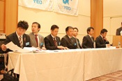 第一部の平成24年度の振り返りでは各委員長・各プロジェクトリーダー・ブロック大会大会長・実行委員長・出向理事そして三役の振り返りの映像が流れ1年間の事業を振り返りました。