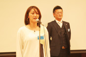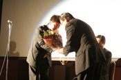 卒業会員の奥様よりお祝いのメッセージが読まれました。日ごろの感謝をこめて卒業会員より奥様へ花束が贈られました。