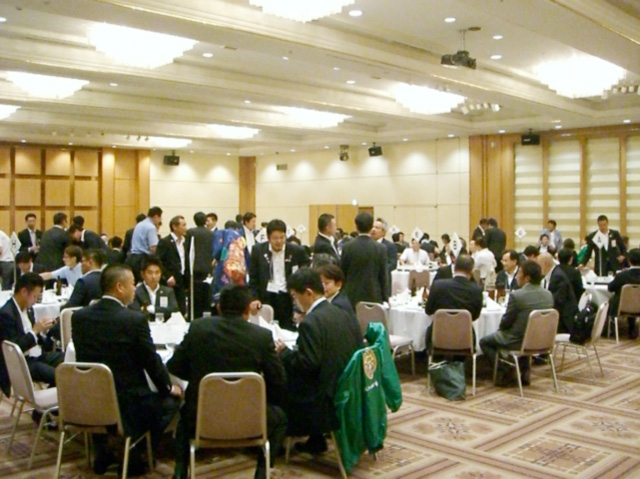 18時の会議終了後、20分間の会場設営の間にウエルカムドリンクの提供が始まり、18時半から懇親会が始まりました。会長会議の参加者、夢会議の参加者にも懇親会にご参加いただき、盛大に開催することができました。 |