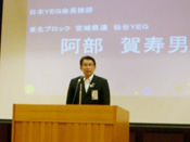 平成25年度は伊勢にて東海ブロック大会が開催されるということで、伊勢YEGの中西大会長、東海ブロックの加藤代表理事(伊勢YEG)からPRがありました。 |