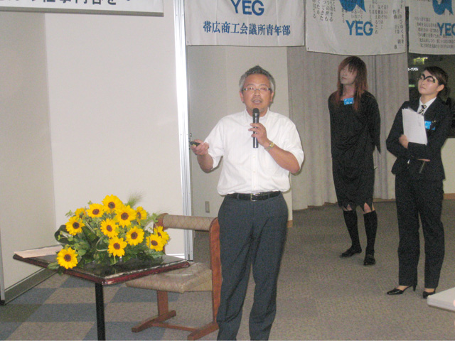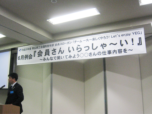続いて連絡事項に移りまして、会員交流委員会7月例会(家族会)のPRビデオ上映・研修委員会7/11(木)事業「日常会話で活かせるコーチング」・梶野ブロ代より先程朴会長も取り上げてました、春の会長会議の件と「成功は人の表面を磨く」「失敗は人の裏面を磨く」という、とても深い話しを聞かせて頂きました。石井道連会長より、他団体との交流を増やす件、22ある商工会議所の青年部を増やしていくというとても真面目なお話しを頂きました。 |