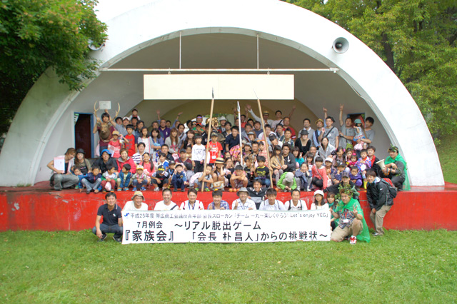 平成25年7月28日(日)帯広動物園で7月例会『家族会』~脱出ゲーム「会長 朴 昌人」からの挑戦状~ が開催されました。 まず朴会長より挨拶がありました。連絡事項として8月例会のPRがありました。 続いて、担当委員会である会員交流委員会小林善之より趣旨説明がありました。説明の中で、是非家族の皆さんは夏休みの思い出を作ってくださいという説明が印象に残りました。 ゲームの説明、そしてゲーム開始!