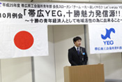 マイクが地域魅力発信委員会の手に渡ると、いよいよ10月例会「帯広YEG,十勝魅力発信源!!~十勝の青年経済人として地域活性の為に出来ること~」が始まりました。 |