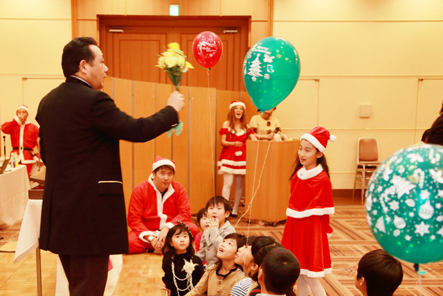 乾杯の後、マジックショーが始まりました。子供たちも不思議なマジックに興味津々の様子でした。