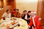 どのテーブルも、1年に1回のクリスマスパーティを楽しんでいました。