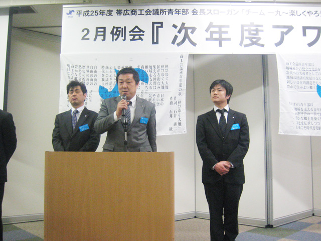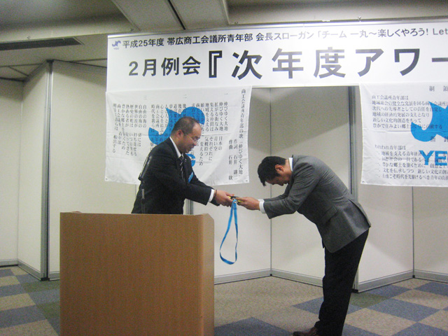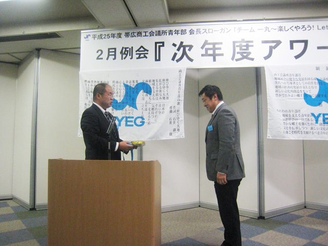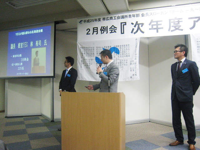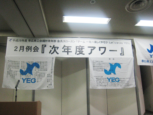 今年度も残すところあと1ヶ月ですが、今例会を通じて、次年度へのスタートも切られました。帯広YEG、次年度も黒田会長のもと元気に楽しく活動していきます。 |