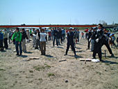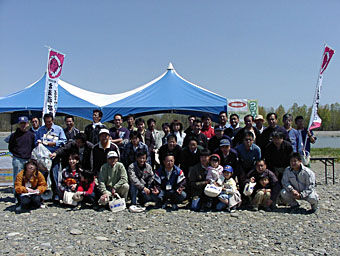 快晴の天気の下、集合場所の帯広市内の札内川愛国大橋河川敷特設会場には、帯広YEGのメンバーや家族、他団体や一般参加者など約300人が集まりました。