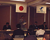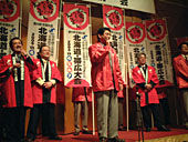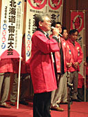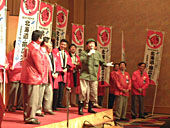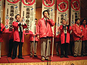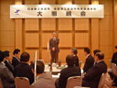 第二部では、今年度スローガンについて「スローガンの団結は、単なる団結ではなく厳しさもある団結であり、個々が目標を持ち自分を理解し相手も理解することが本当の団結である」と橋本会長が力説し、全国大会開催についても「今年は悔いが残らないように一生懸命やらなければならない。そのためには、初心にかえることも大事」と述べました。