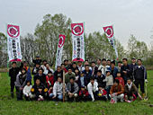 この日は、メンバー39名とそのご家族で総勢50数名が参加しました。例年より区画が広く、参加したメンバーは四苦八苦しながらの植樹でした。