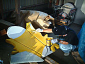 その盆おどり参加のための山車づくりが8月1日(日)から始まりました。全国大会実行委員会関連の各会議が連日のように開かれる中、合間をぬって多くのメンバーが参加し、山車づくりに励んでいます。